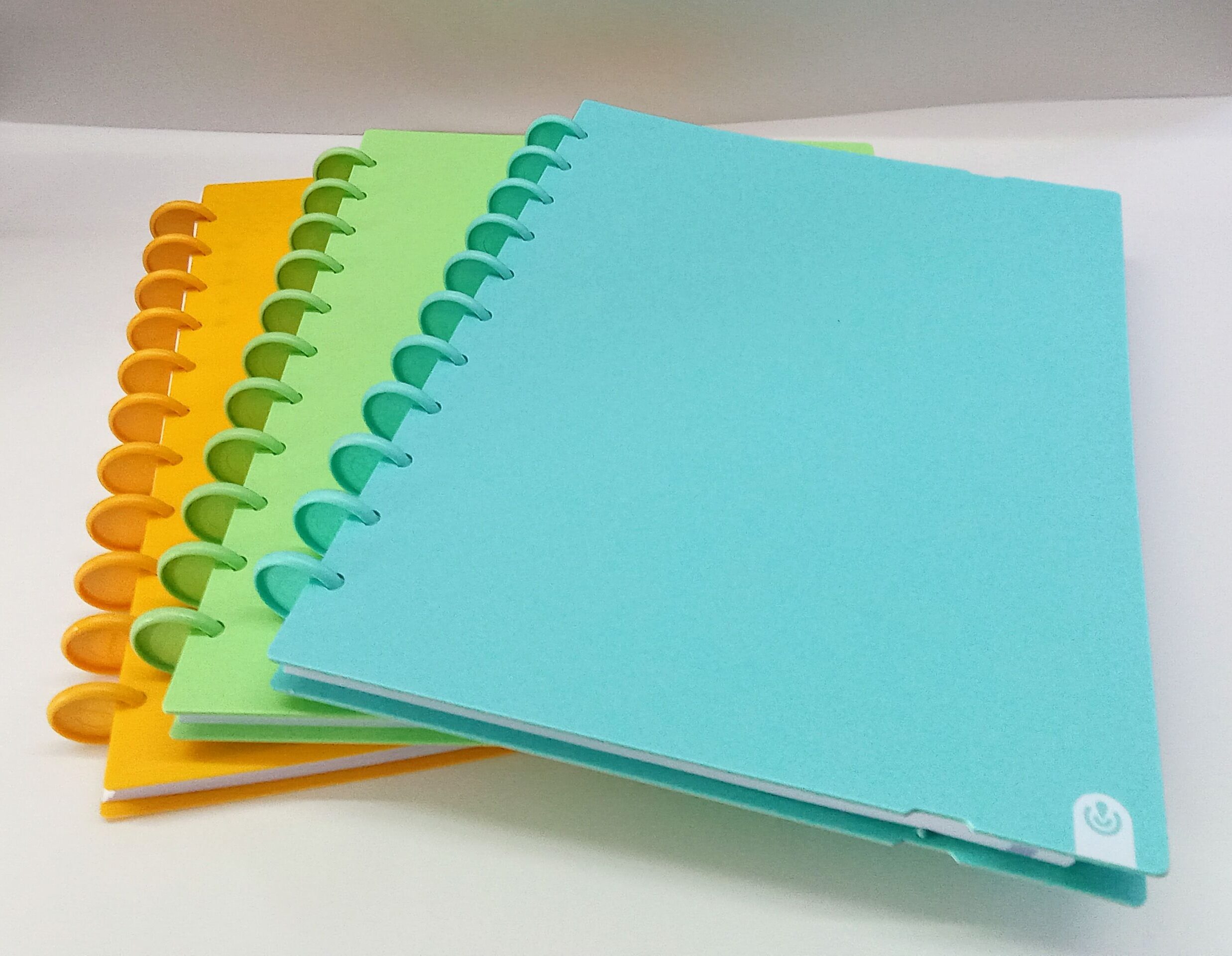 Possui capas resistentes em cores pastel que protegem as folhas e dão um visual moderno e minimalista. O sistema de discos garante abertura completa e manuseamento confortável, permitindo escrever em qualquer página com...