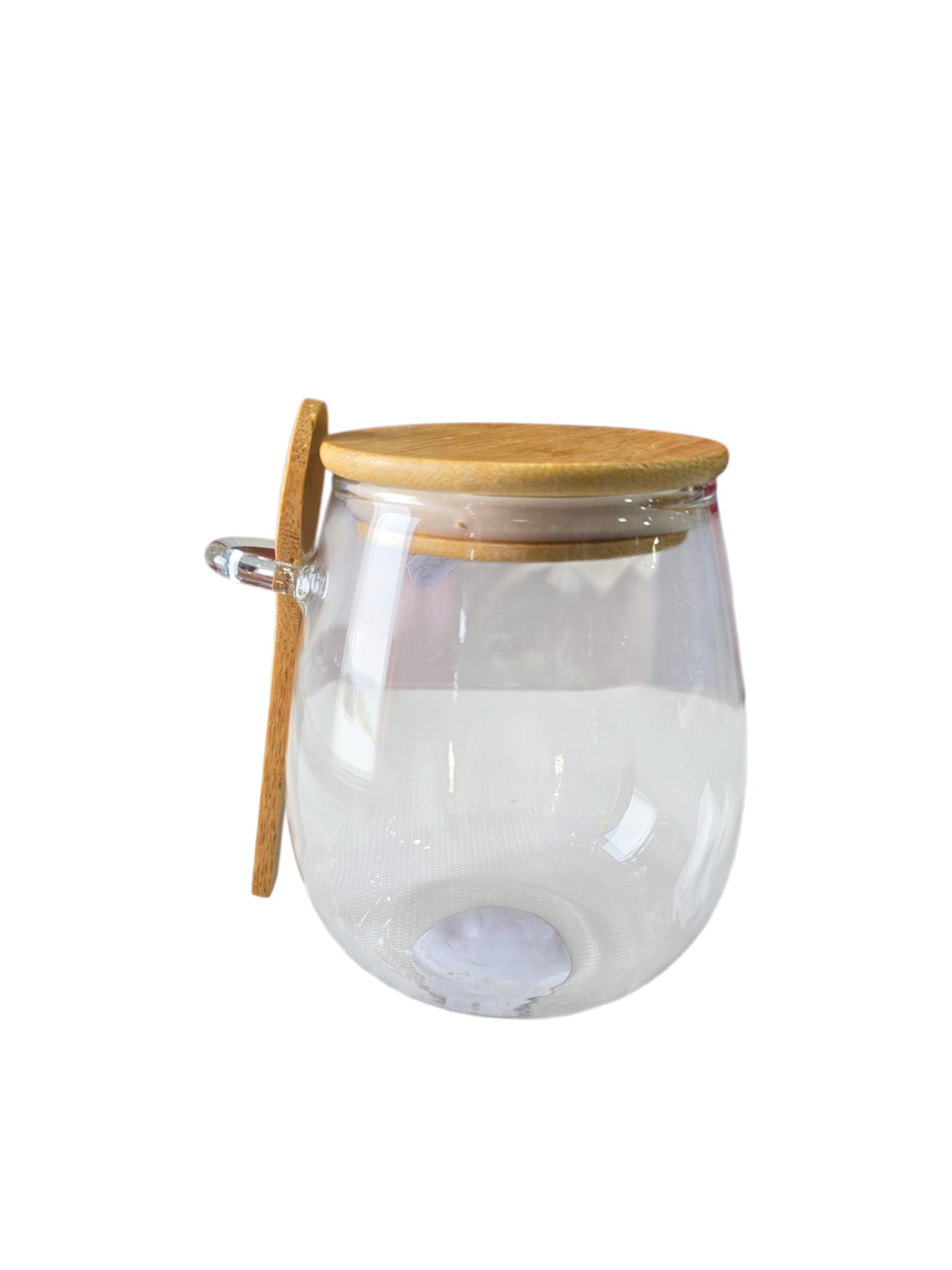 Pote de vidro com tampa e colher, ideal para condimentos ou decoração.